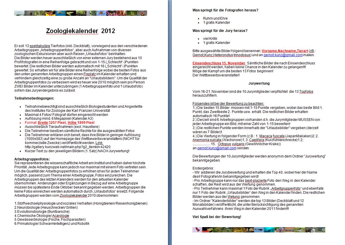 Teilnahmebedingungen Zoologiekalender 2012