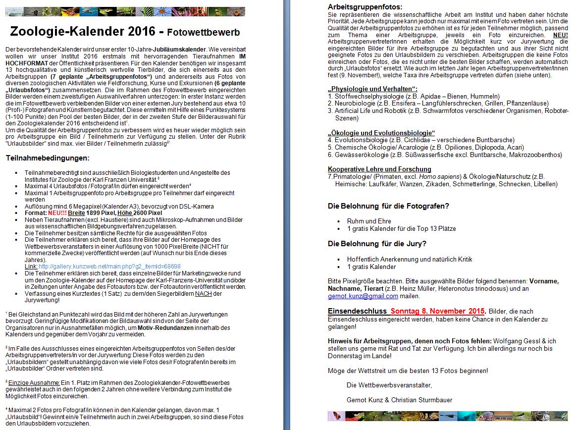 Home / Zoology / Kalender Institut fuer Biologie / Zoologiekalender 2016 /